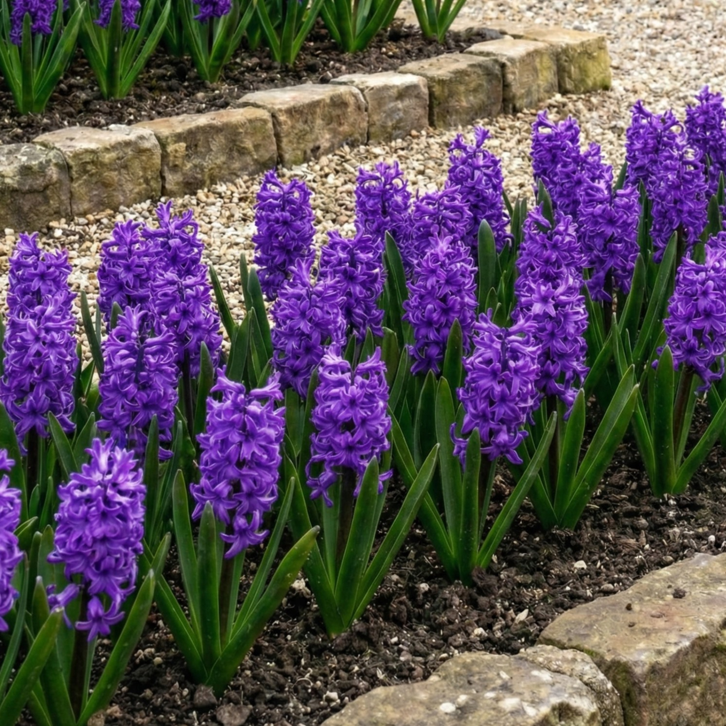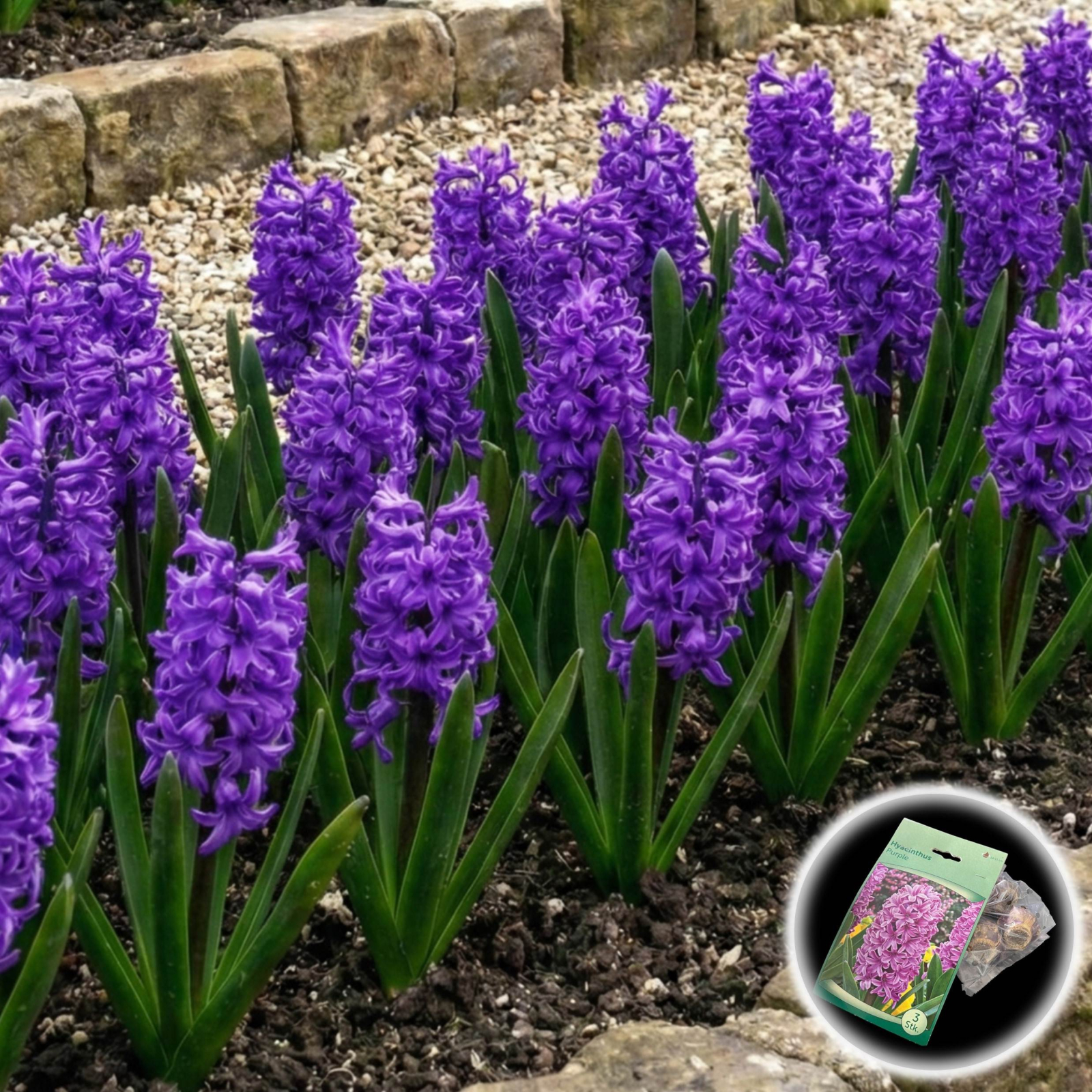 Sfatul specialistului (Pepiniera Sibiu): Pentru un design peisagistic profesionist, plantați zambilele mov (Purple) intercalate cu narcise galbene (Tete-a-Tete) sau lalele galbene. Culorile complementare (violet-galben) se vor evidenția reciproc, creând cel mai vibrant efect vizual posibil în grădină.