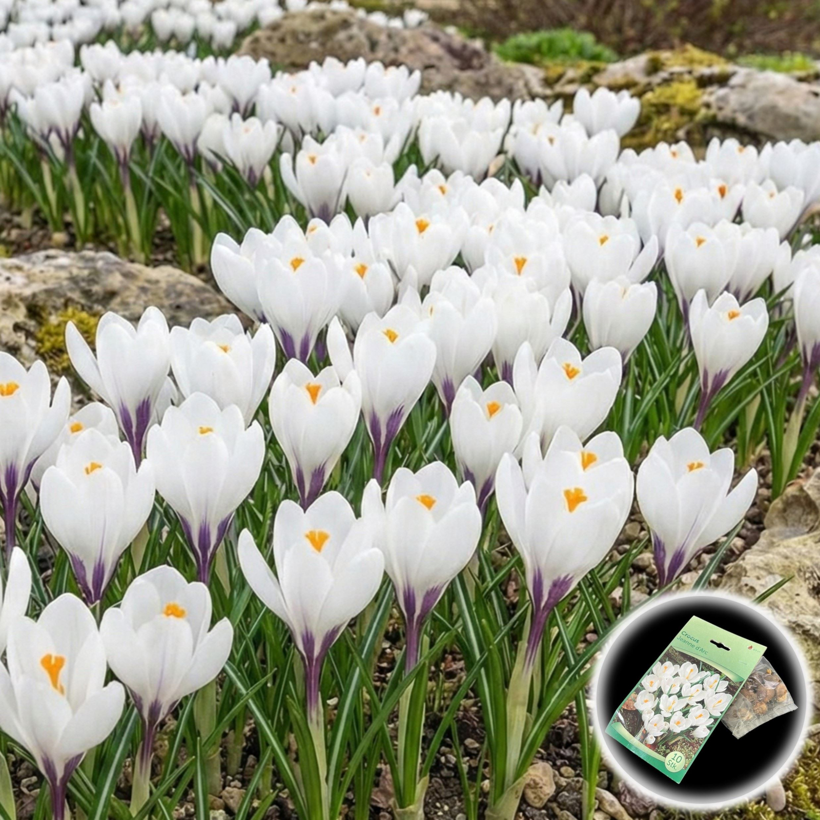 Acest soi clasic și elegant de brândușe aduce puritatea zăpezii direct în grădina de primăvară, având petale mari, alb-imaculat, și un pistil portocaliu vibrant care creează un contrast spectaculos. Originară din selecții olandeze de top, Jeanne d'Arc este vestitorul ideal al primăverii, transformând peluzele și bordurile în covoare florale de o delicatețe rară.