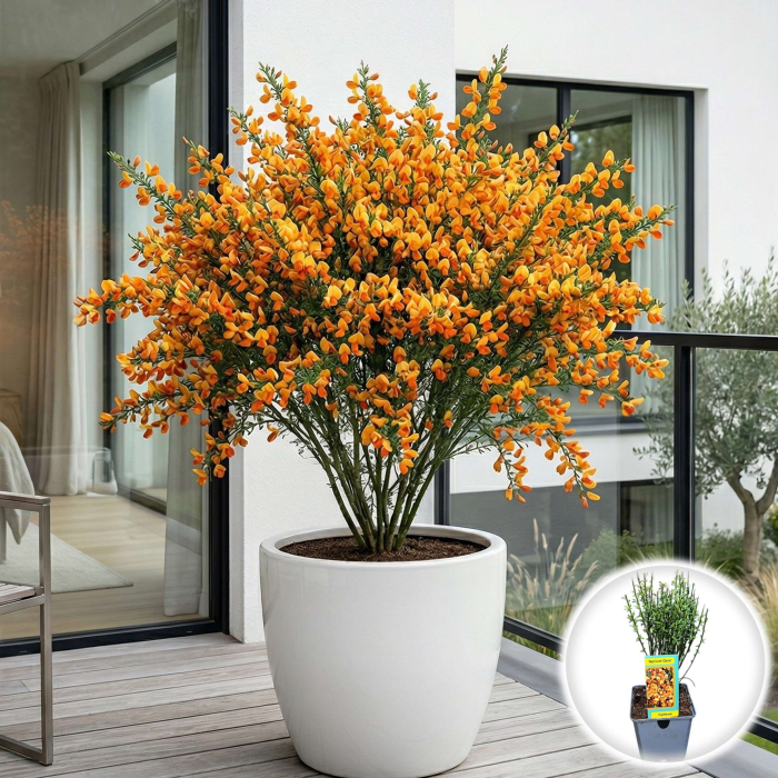 Cytisus 'Apricot Gem' este un arbust ornamental de exterior absolut fermecător, renumit pentru ramurile sale arcuite, de tip nuia, care primăvara se îmbracă într-o cascadă de flori viu colorate. La dimensiunea de 40 cm, tufa este deja bine formată și înrădăcinată, pregătită să aducă un accent exotic și plin de vitalitate în grădina ta, necesitând în același timp un efort minim de îngrijire.