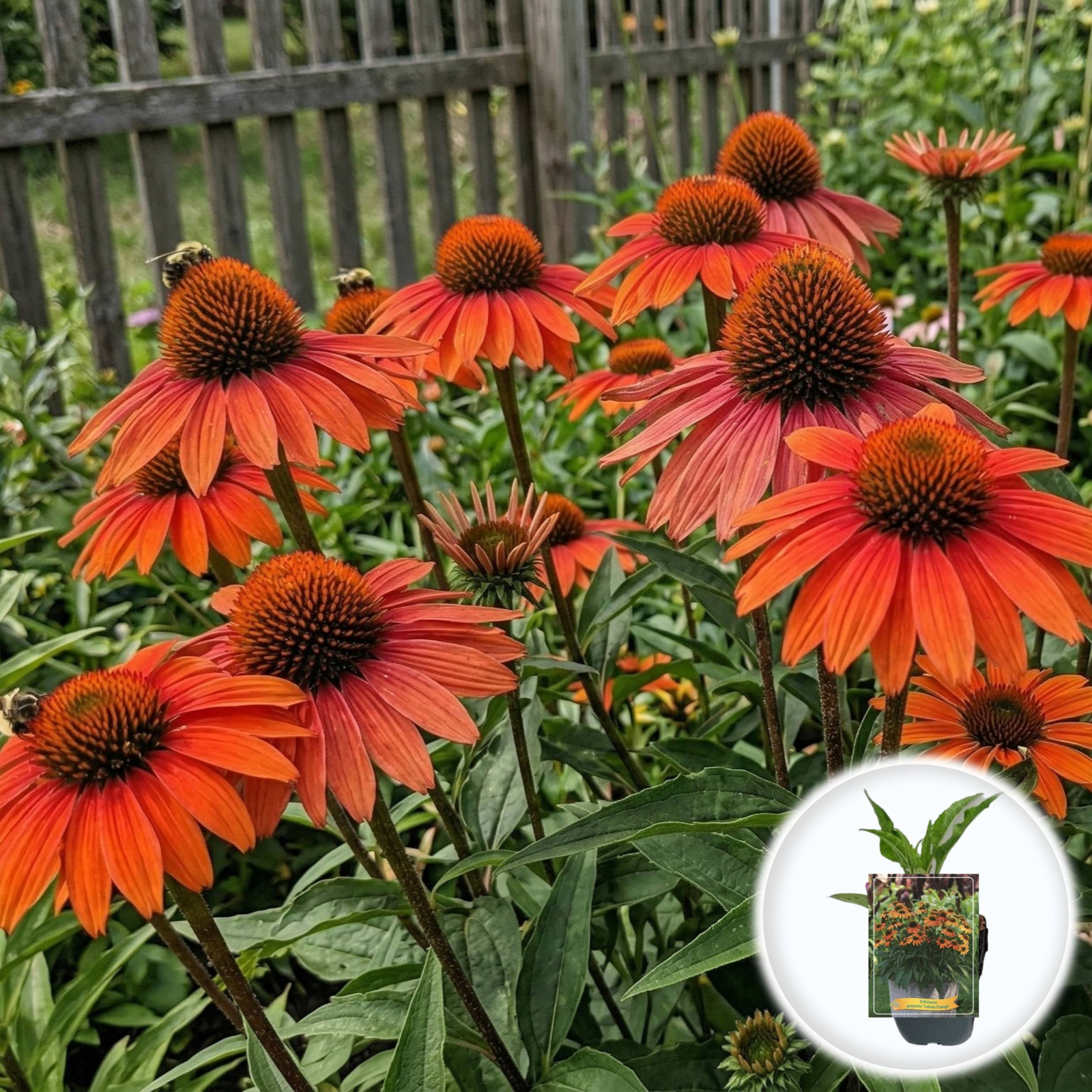 Echinacea 'Lakota Orange' este o plantă perenă fascinantă, remarcabilă prin florile sale mari, de tip margaretă, într-o paletă vibrantă de nuanțe portocalii, de la mandrină până la arămiu. Originară din preriile Americii de Nord, această varietate compactă și robustă este ideală pentru adăugarea unui accent de culoare caldă în borduri perene, grădini rustice sau compoziții peisagistice care atrag polenizatorii.