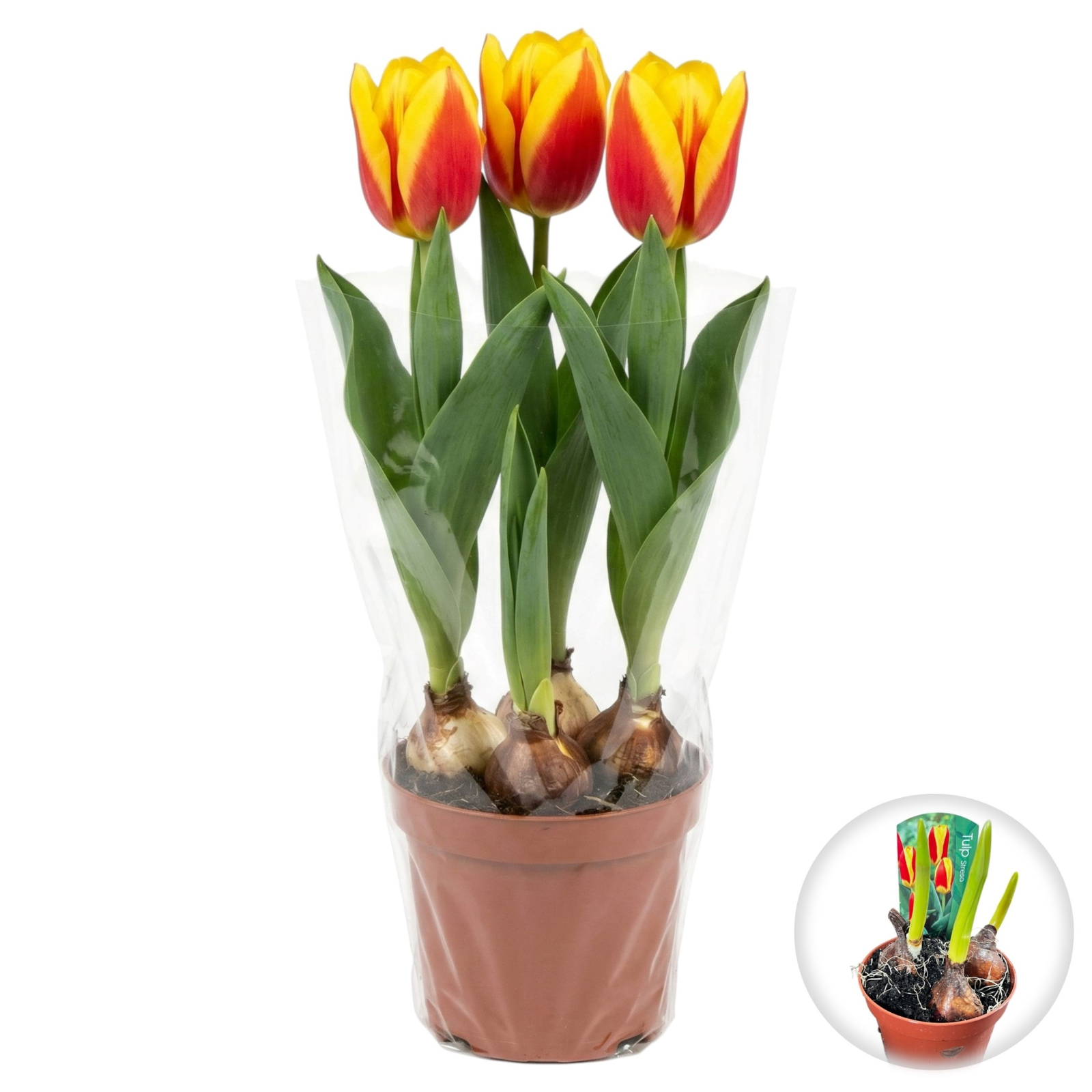 Conținut: Produsul conține 3 bulbi plantați într-un ghiveci de 9-10 cm, pregătiți pentru o înflorire timpurie și plină de energie între 1 și 8 Martie.