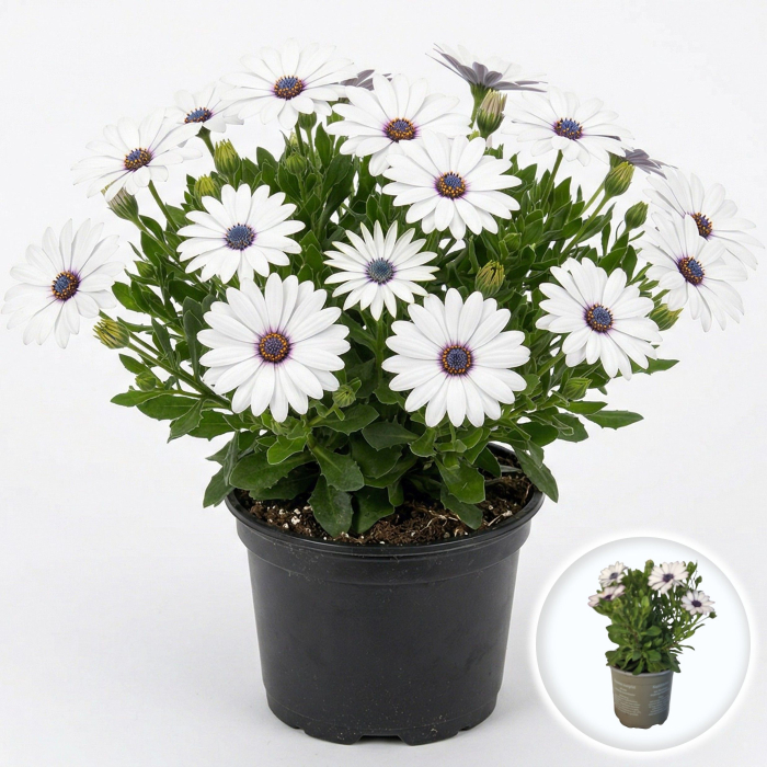 Sfatul specialistului 1: 'Asti White' este "pânza albă" a jardinierelor tale. Albul imaculat are capacitatea unică de a calma și de a pune în valoare orice altă culoare de lângă el. Încearcă să asociezi această Margaretă Africană cu Bidensul portocaliu pe care l-am discutat anterior sau cu Mușcate roșii intense; contrastul obținut va fi de revistă!
