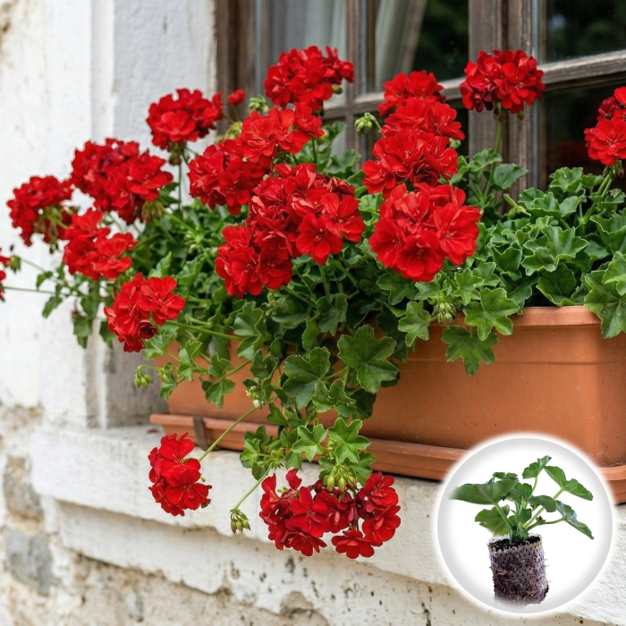 Acest pachet exclusiv conține 5 butași profesionali de mușcate curgătoare cu floare dublă, selecționați pentru vigoarea lor excepțională și capacitatea de a crea cascade spectaculoase de flori.