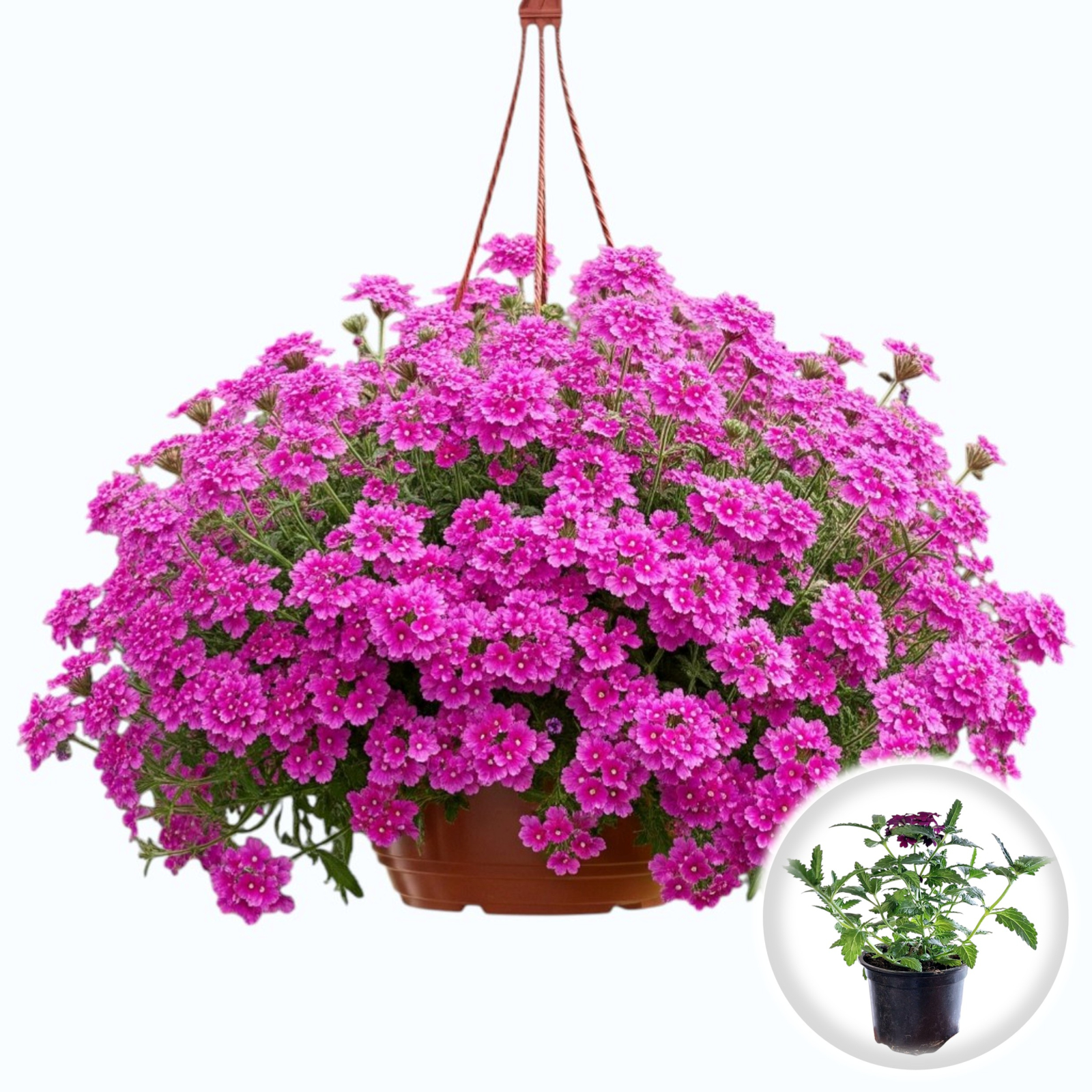 Verbena curgătoare Magenta este o explozie de culoare și vitalitate, remarcabilă prin inflorescențele sale bogate de un roz-magenta intens, care transformă orice jardinieră într-o cascadă florală spectaculoasă.