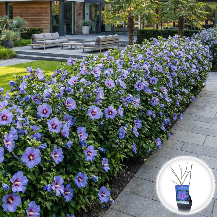 Hibiscus 'Oiseau Bleu' este un arbust ornamental de exterior spectaculos, considerat una dintre cele mai frumoase varietăți cu flori albastre. Este extrem de apreciat pentru eleganța sa și pentru capacitatea de a aduce o nuanță rară în grădină. Exemplarul de 40 cm este ideal pentru a fi stabilit rapid în grădină, având o vigoare excelentă și o adaptabilitate ridicată la mediul nou.