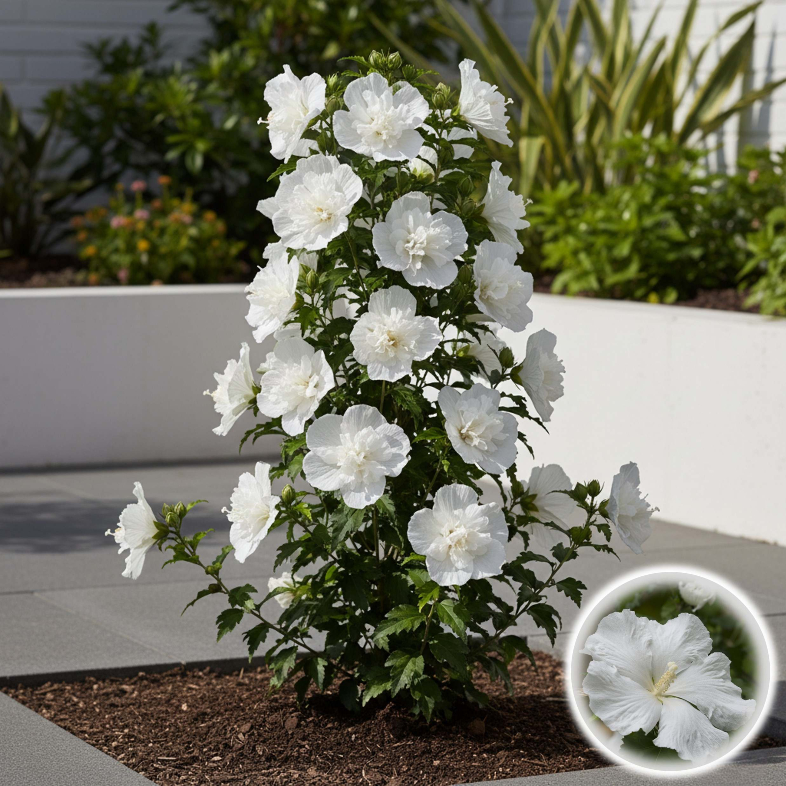 Denumire științifică: Hibiscus syriacus 'Flower Tower White'