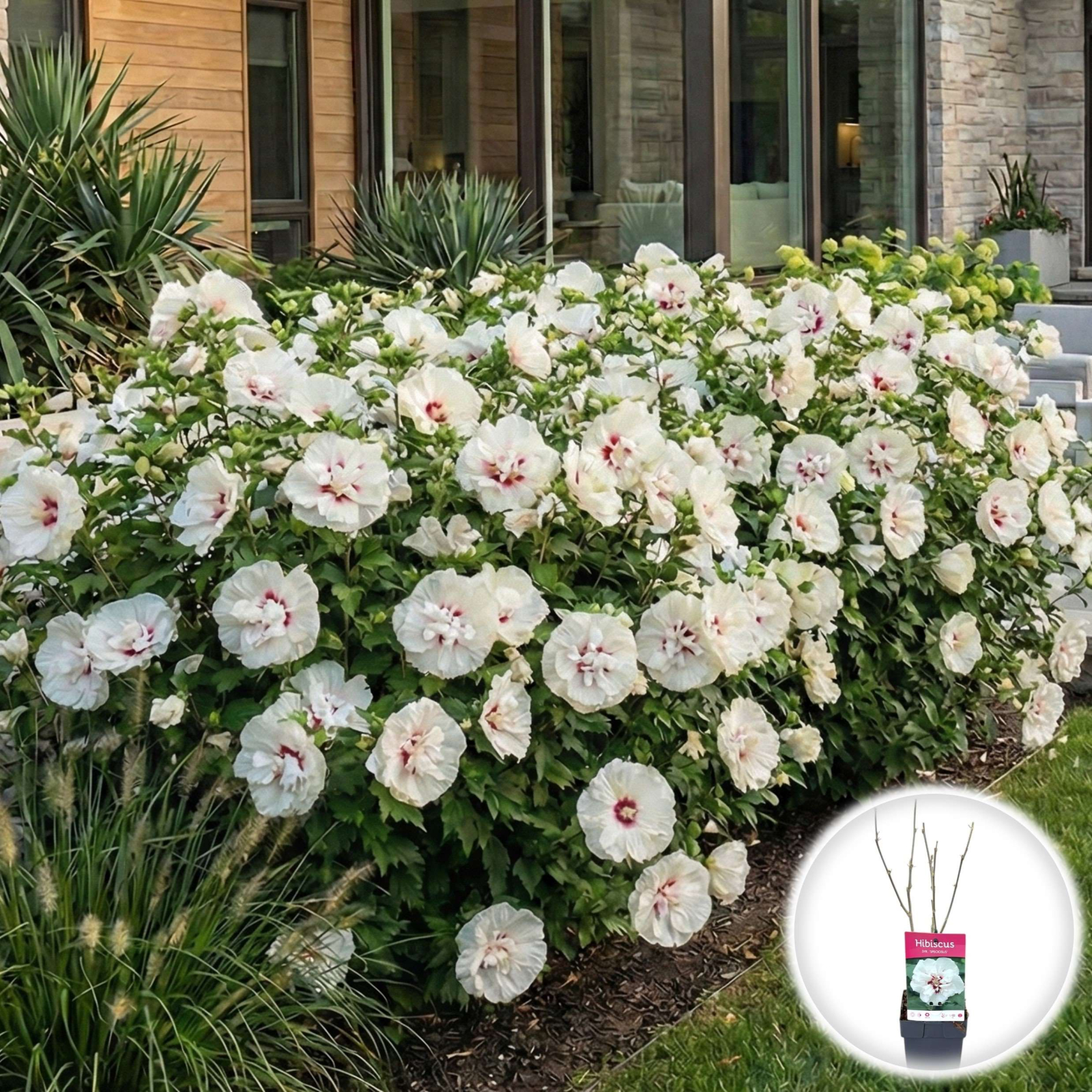 O bijuterie a verii târzii, Hibiscus 'Speciosus' este un arbust viguros care transformă grădina într-un colț exotic. Se remarcă prin florile sale duble, spectaculoase, de un alb pur pătat cu un centru roșu-vișiniu vibrant. Originar din selecții olandeze, este ideal pentru garduri vii înflorite sau ca plantă solitară, aducând culoare și vitalitate atunci când majoritatea plantelor se odihnesc.