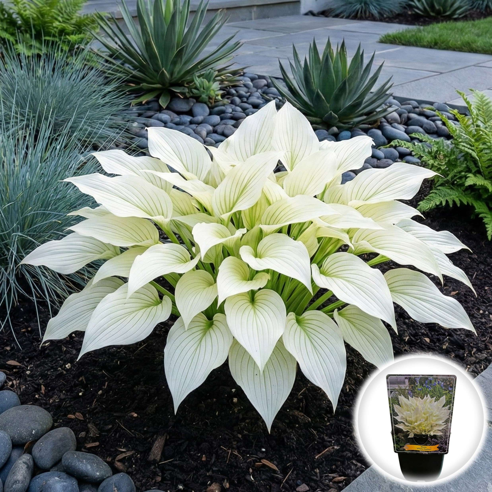 O apariție fantomatică și fascinantă în grădina de umbră! Hosta White Feather este celebră pentru metamorfoza sa unică: primăvara, frunzele răsar într-un alb crem pur, imaculat, luminând colțurile întunecate ale grădinii. Pe măsură ce sezonul avansează, frunzișul capătă treptat striații verzi, devenind un amestec spectaculos de alb și verde crud. Este o plantă de colecție, livrată gata înrădăcinată pentru un start sigur.