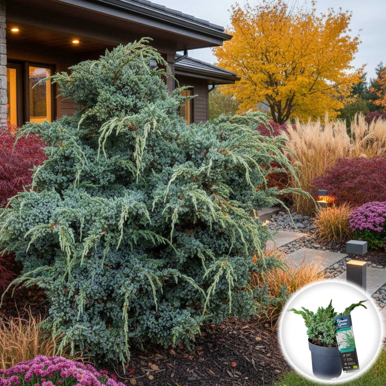 Utilizare Practică: Excelent ca specimen solitar în grădină, pentru a crea accente de culoare și textură în rocării, pe taluzuri sau în aranjamente cu arbuști pitici. Culoarea sa albastră oferă un contrast plăcut cu vegetația verde-închis.