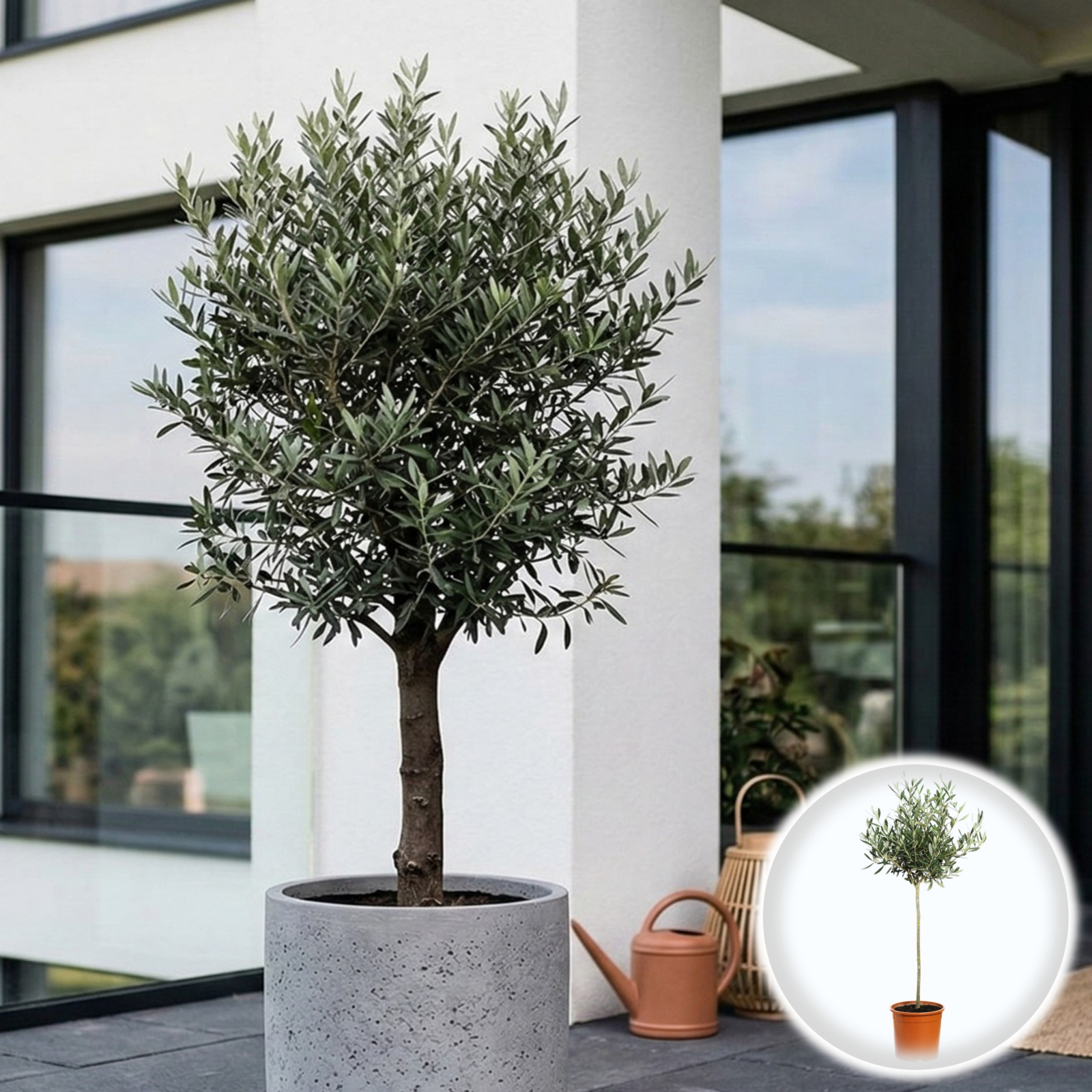 Măslinul European este arborele legendar al Mediteranei, oferind un decor atemporal prin trunchiul său sculptural și frunzișul argintiu care emană eleganță și rezistență.