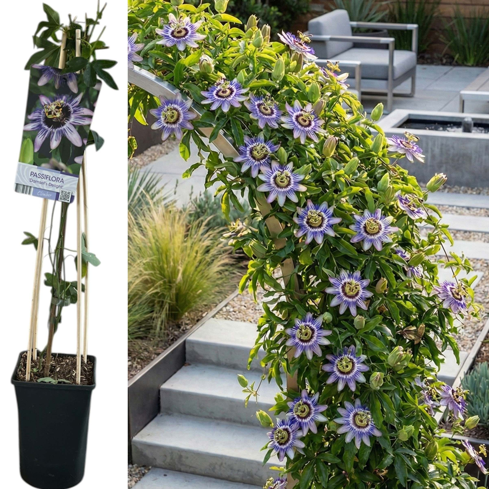 Sfatul specialistului 2: Passiflora Damsel's Delight înflorește pe lăstarii noi de anul acesta. Pentru a obține o "perdea" de flori, încercați să dirijați câteva ramuri principale pe orizontală; acest lucru va forța nodurile laterale să producă mai mulți boboci florali decât dacă planta ar crește doar drept în sus.