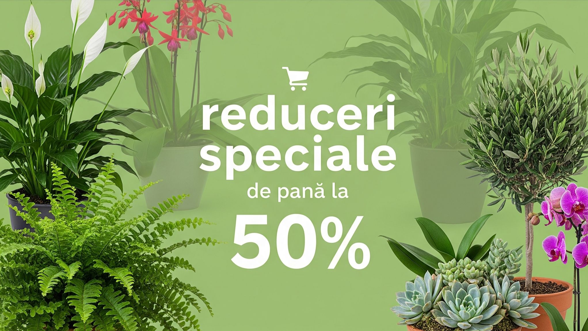 Bine ai venit în colțul nostru verde, unde pasiunea pentru natură se întâlnește cu prețuri excepționale. Acum este momentul perfect să îți înfrumusețezi locuința sau biroul cu plante pline de viață și flori spectaculoase în ghiveci. Am pregătit pentru tine reduceri speciale de până la 50% la o selecție variată de produse care vor aduce prospețime și culoare în orice încăpere.