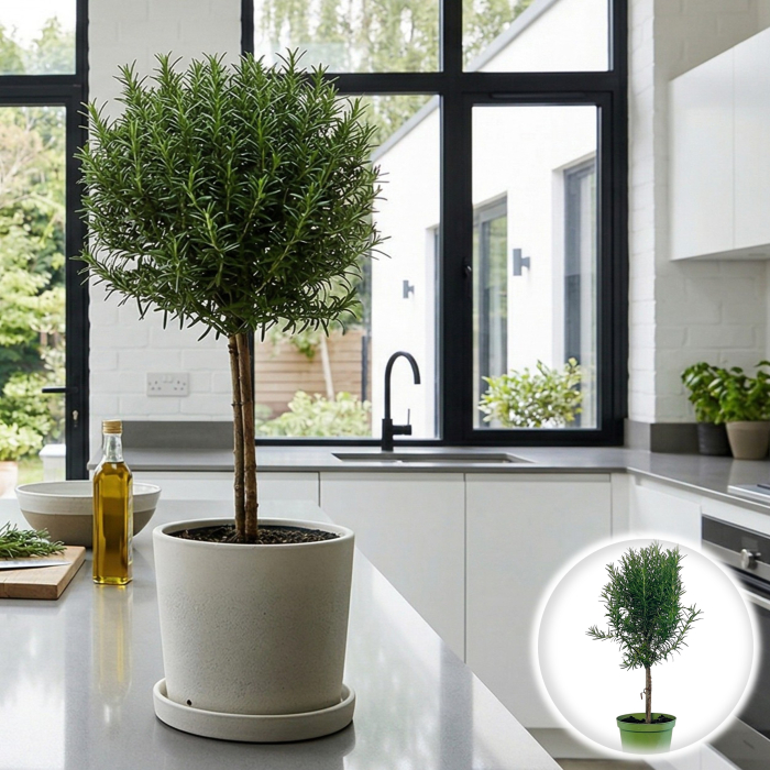 Da, rozmarinul pe tulpină se simte excelent în interior dacă are parte de lumină naturală directă și o temperatură răcoroasă (departe de calorifere).