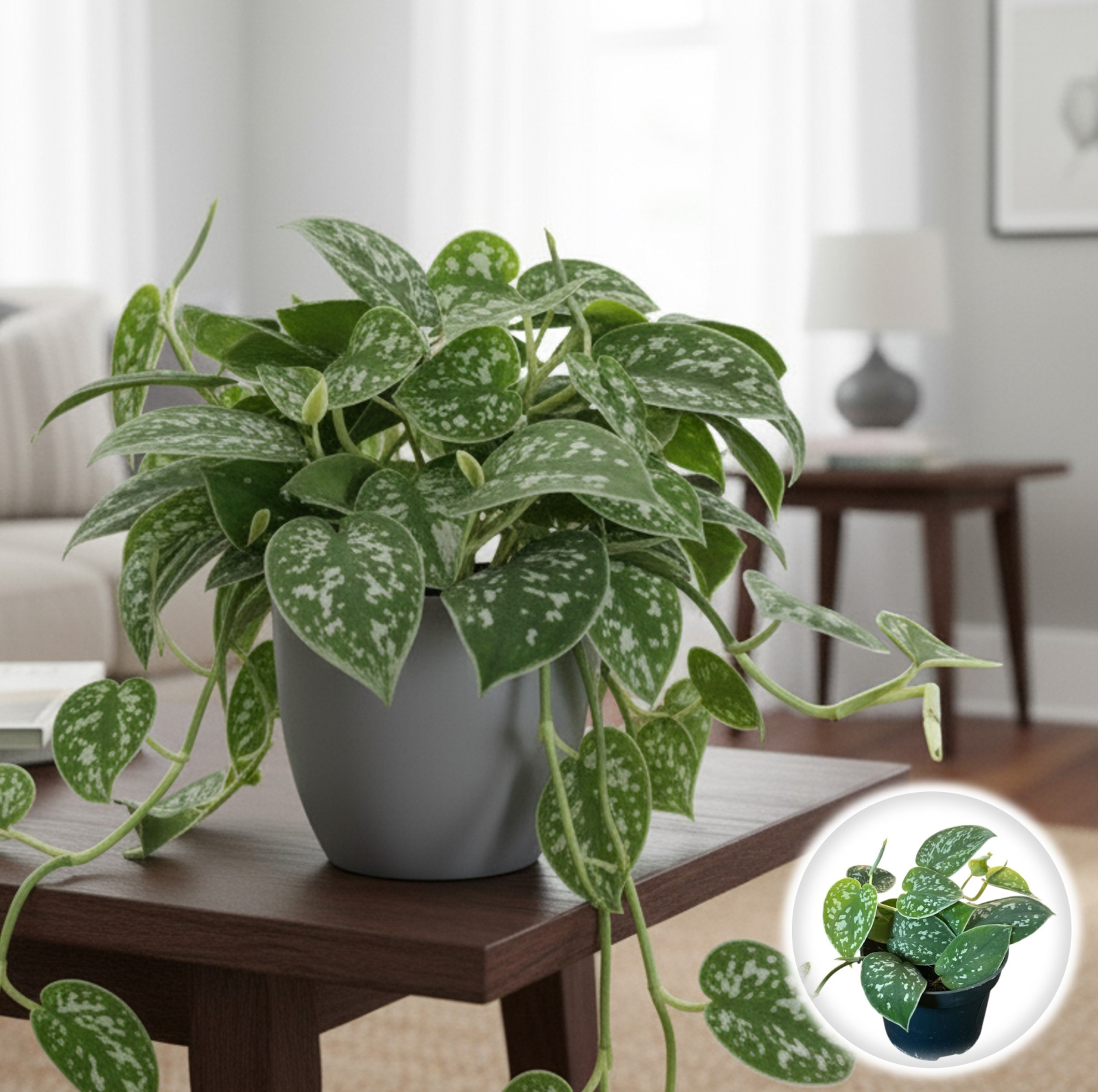 Denumire Populară: Scindapsus Argintiu, Iedera Argintie, Pothos Saten (Satin Pothos).