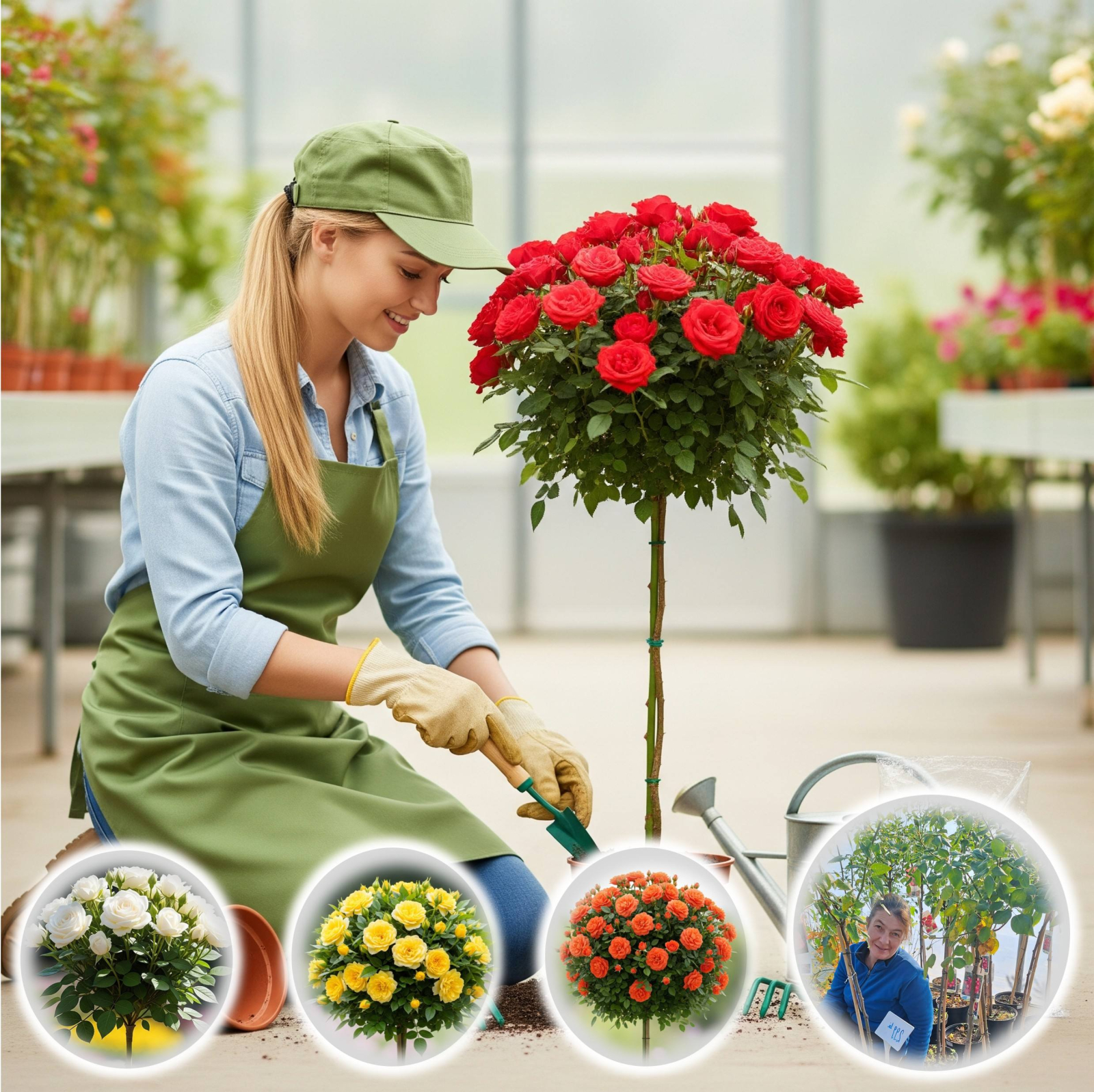 Este o formă specială de trandafir de exterior, obținut prin altoirea unui soi de trandafir (de obicei teahibrid, floribunda sau miniatural) pe o tulpină dreaptă de măceș. Această formă ridicată pune în valoare florile parfumate și adaugă o notă elegantă și verticală oricărei grădini, balcon sau terase.