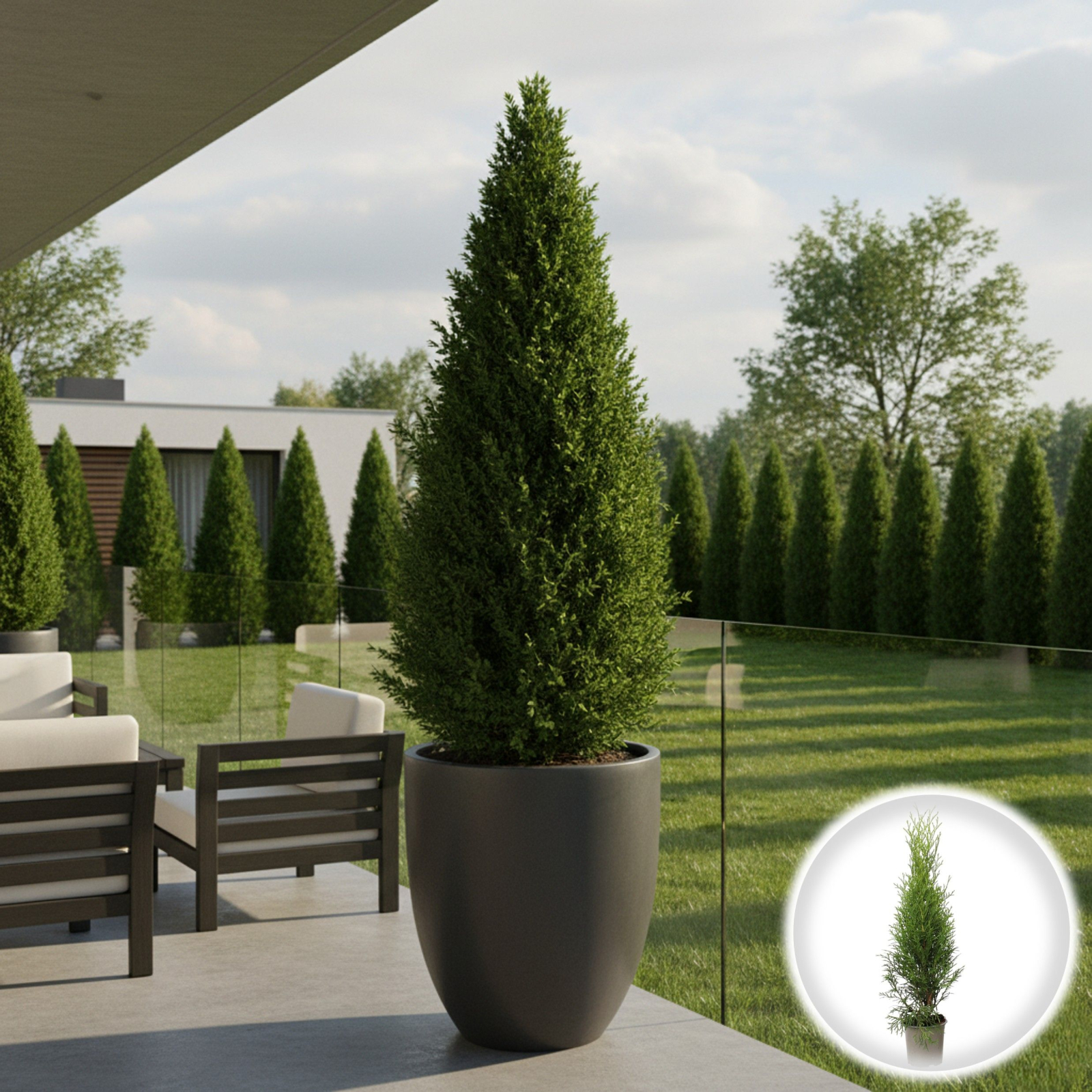 Tip de plantă: Exterior (Arbore ornamental, Conifer). Ideală pentru grădini, alei, parcuri și ghivece mari pe terase.