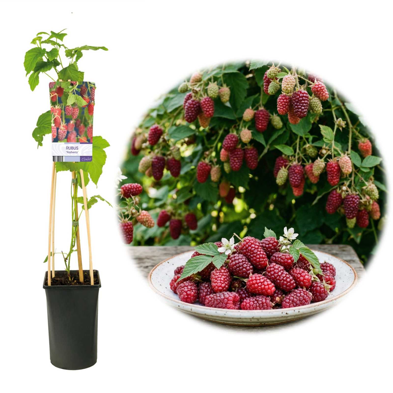 Tayberry este un hibrid spectaculos între mur și zmeur, care a luat ce e mai bun de la ambii părinți. Fructele sunt uriașe (până la 4-5 cm lungime), conice, de culoare roșu-purpuriu închis. Gustul este unic, complex, o combinație între aroma parfumată a zmeurei și dulceața acidulată a murelor. Este o plantă robustă, foarte productivă.